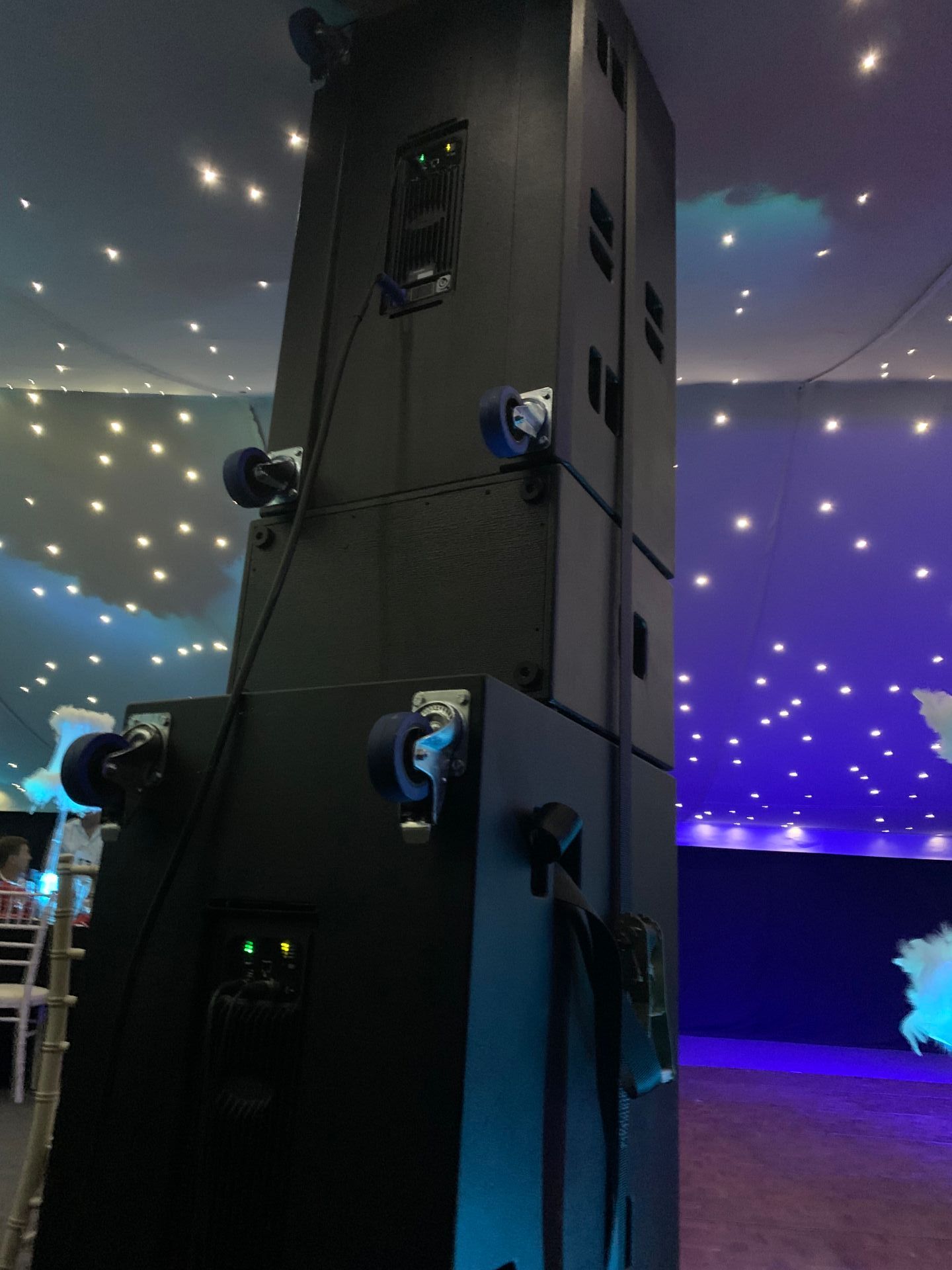 Our sound and lighting packages are on display in our studio based in Peaslake, Guildford, Surrey. Meeting us beforehand can give clients the opportunity to see and hear what’s on offer and to talk through requirements before the event.